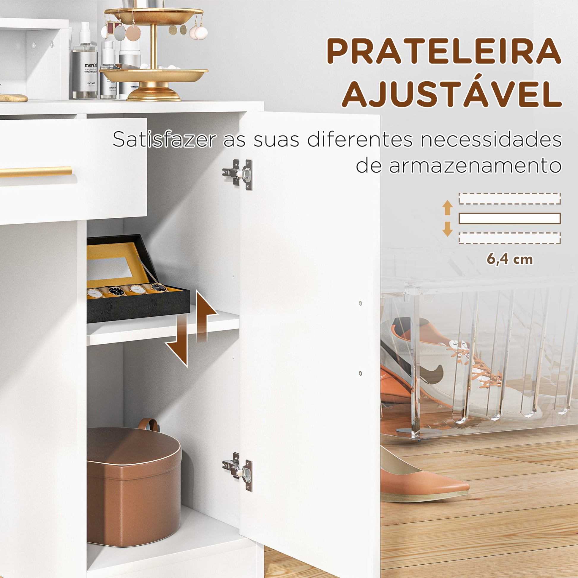 Adicione um toque de glamour ao seu espaço de beleza com este toucador de maquilhagem branco, equipado com um espelho iluminado LED e amplo espaço de armazenamento.