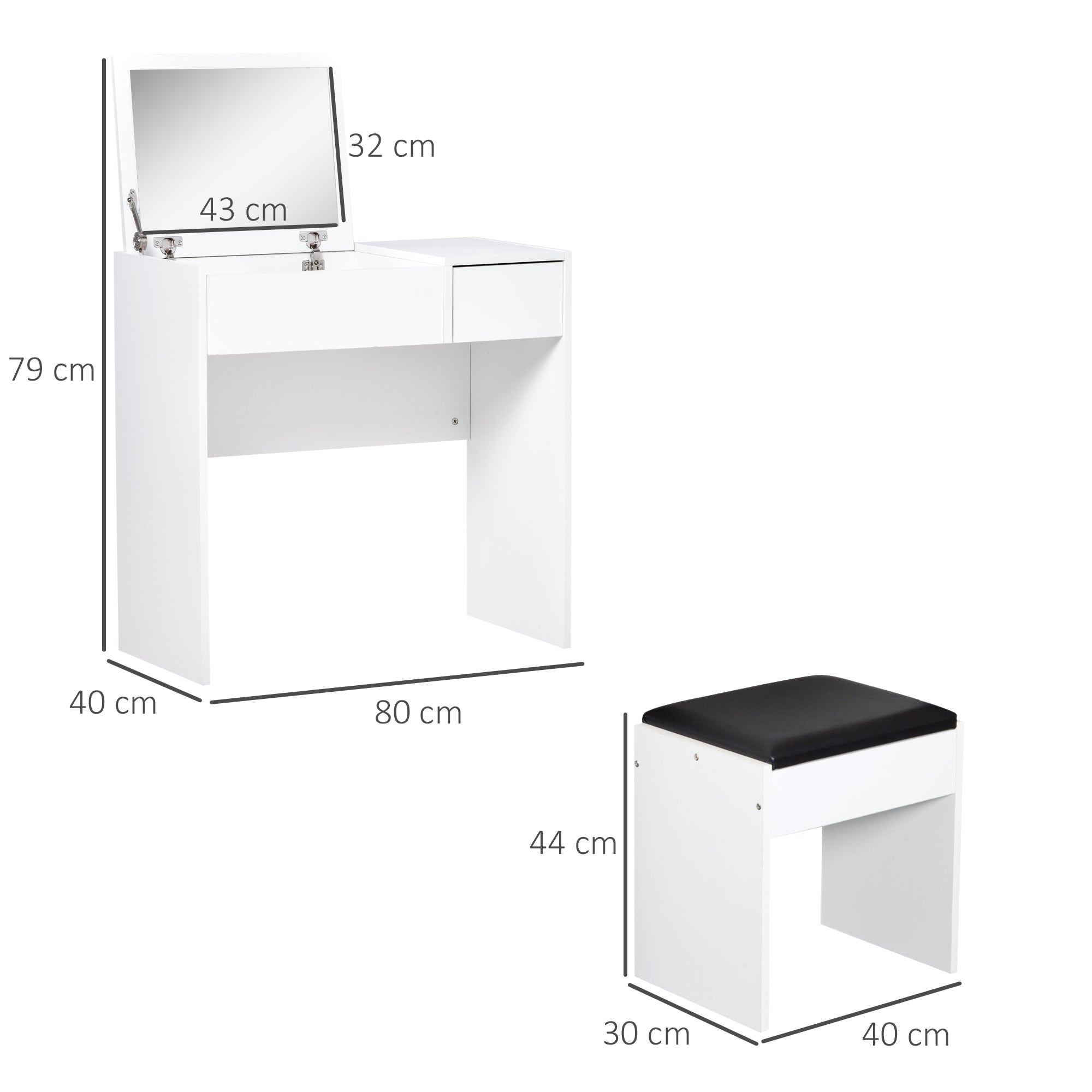 Toucador de Maquilhagem Branco com Tampa Dobrável 80x40x79cm
