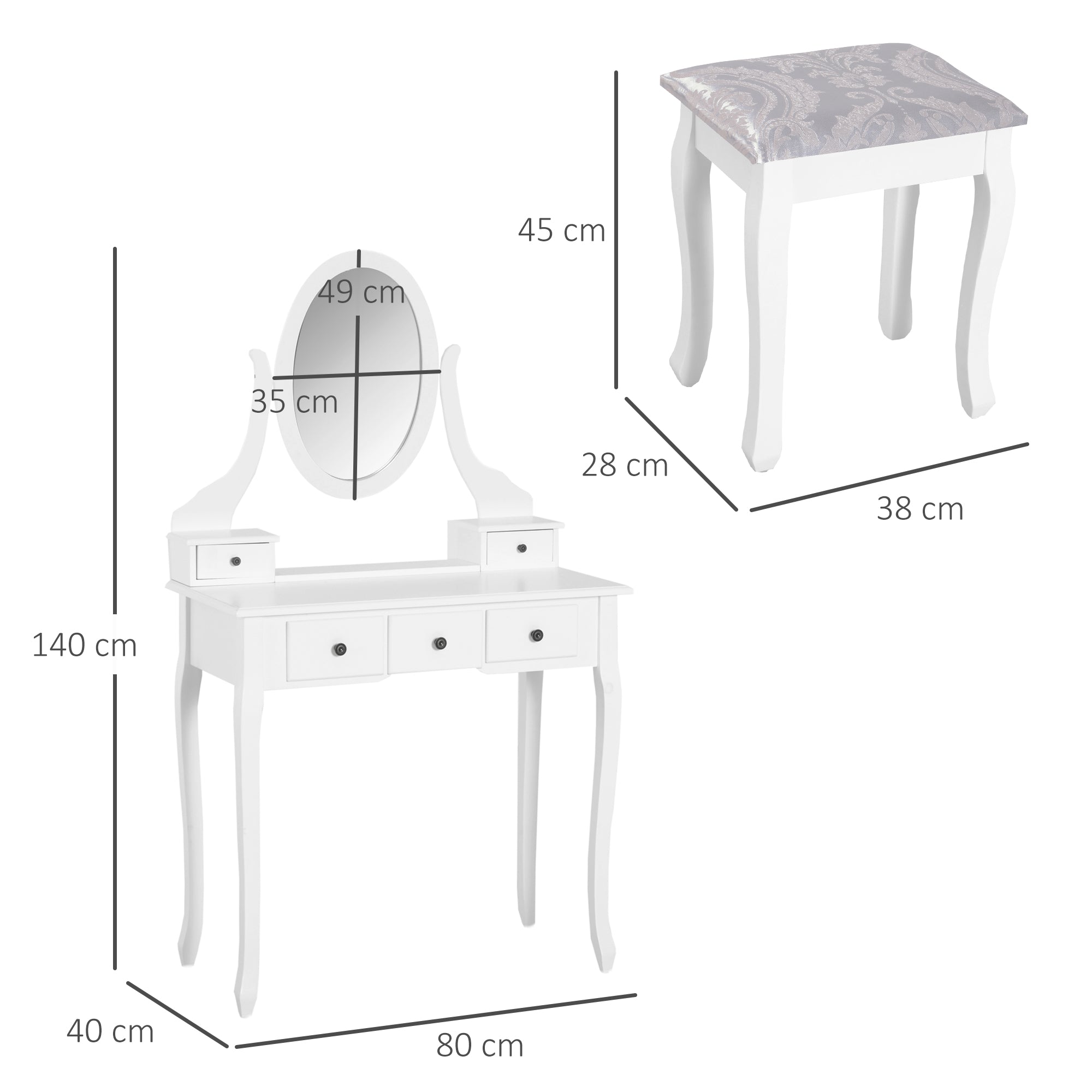 Toucador de Maquilhagem MDF e Madeira Maciça 80x40x140cm - Cor Branco
