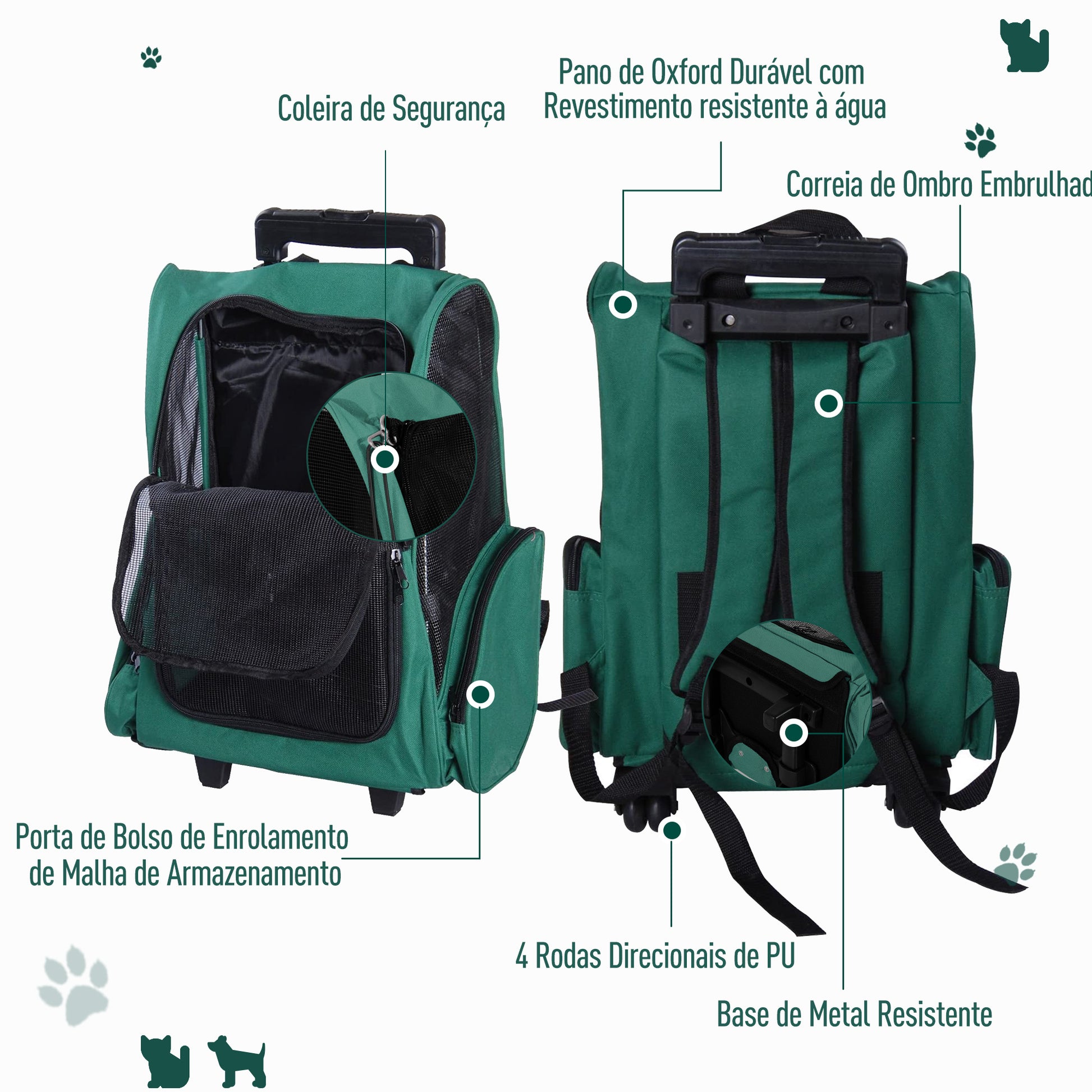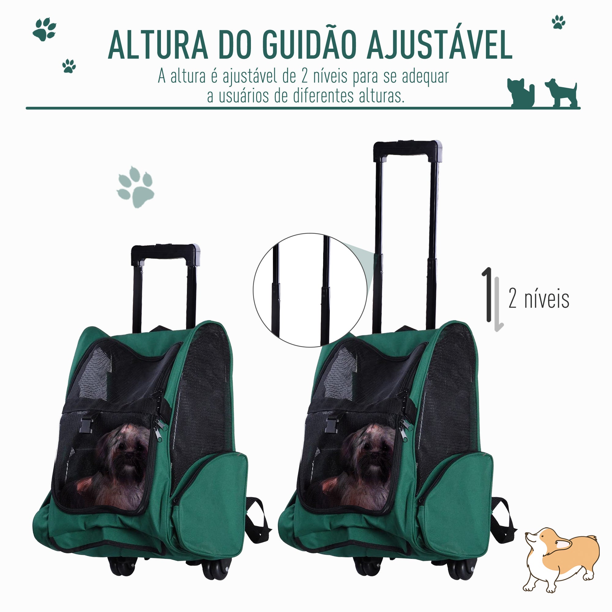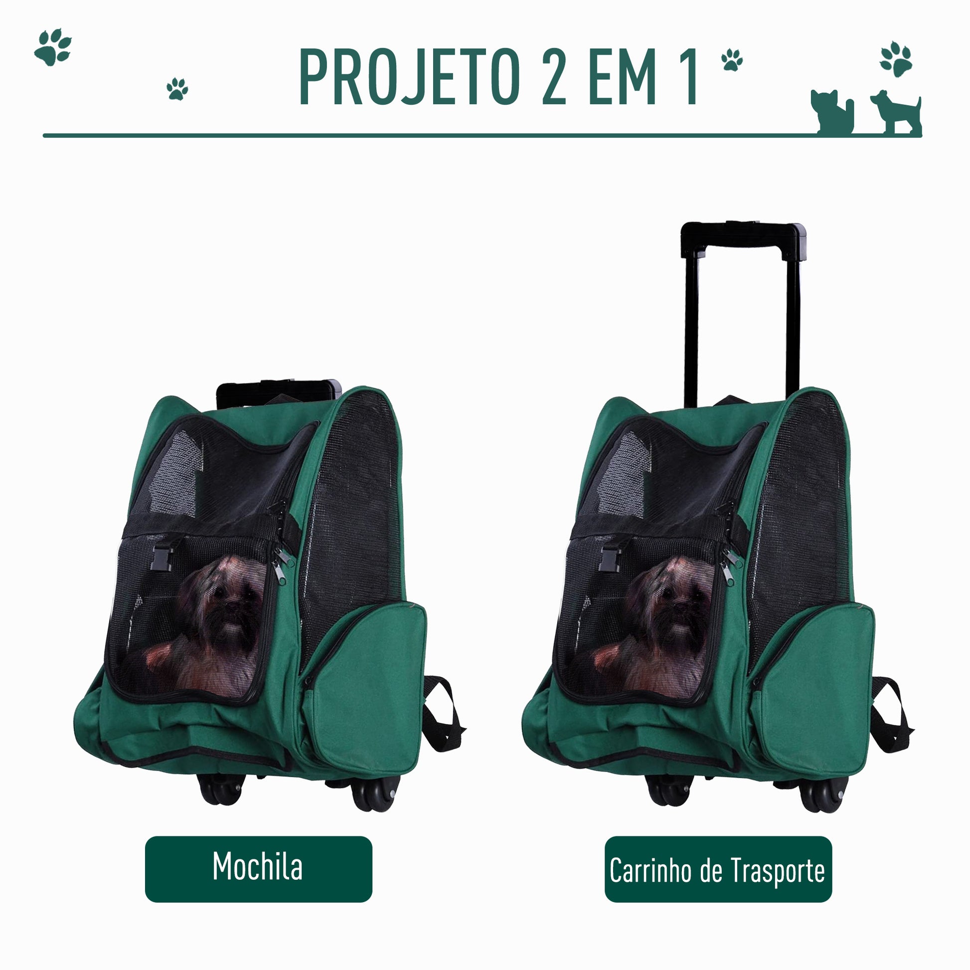 Esta versátil transportadora para animais de estimação pode ser utilizada como carrinho com rodas ou como mochila, proporcionando facilidade de transporte em qualquer situação. Com design inovador, garante conforto e segurança para o seu animal de estimação durante os passeios ou viagens.