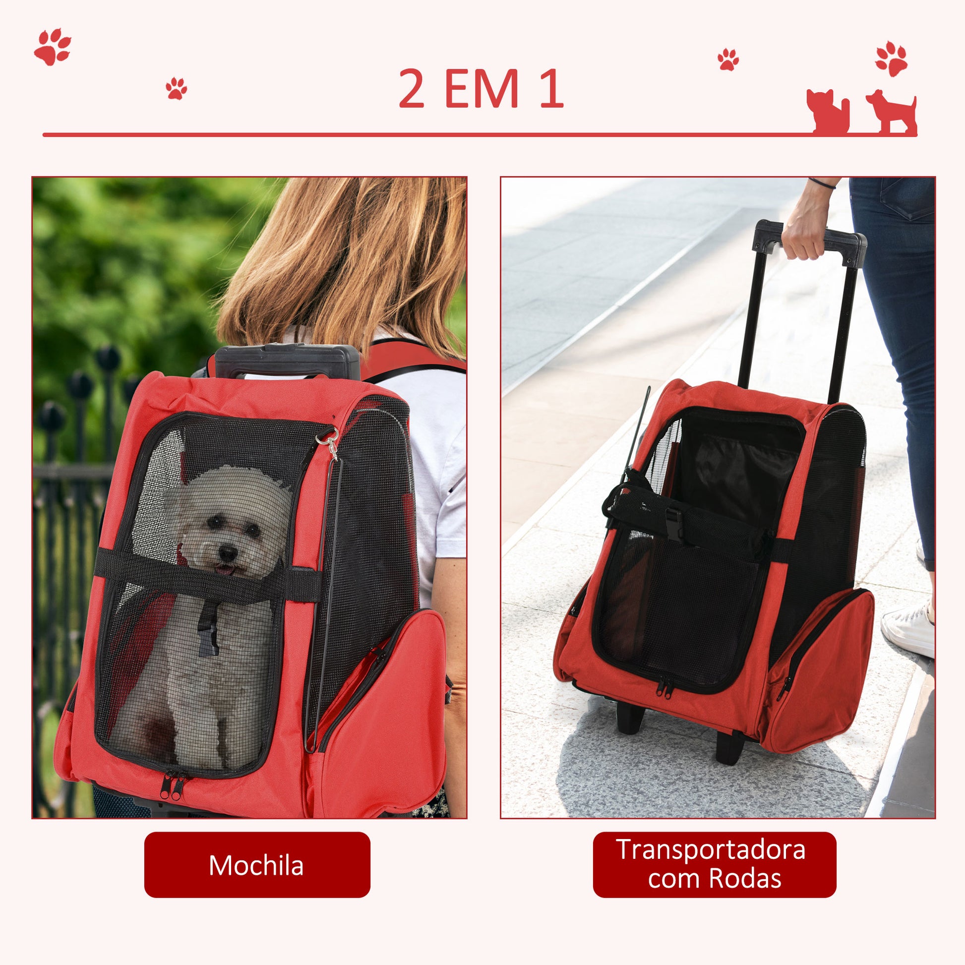 Transportadora 2 em 1 para Animais de Estimação - 42x25x55cm - Vermelho