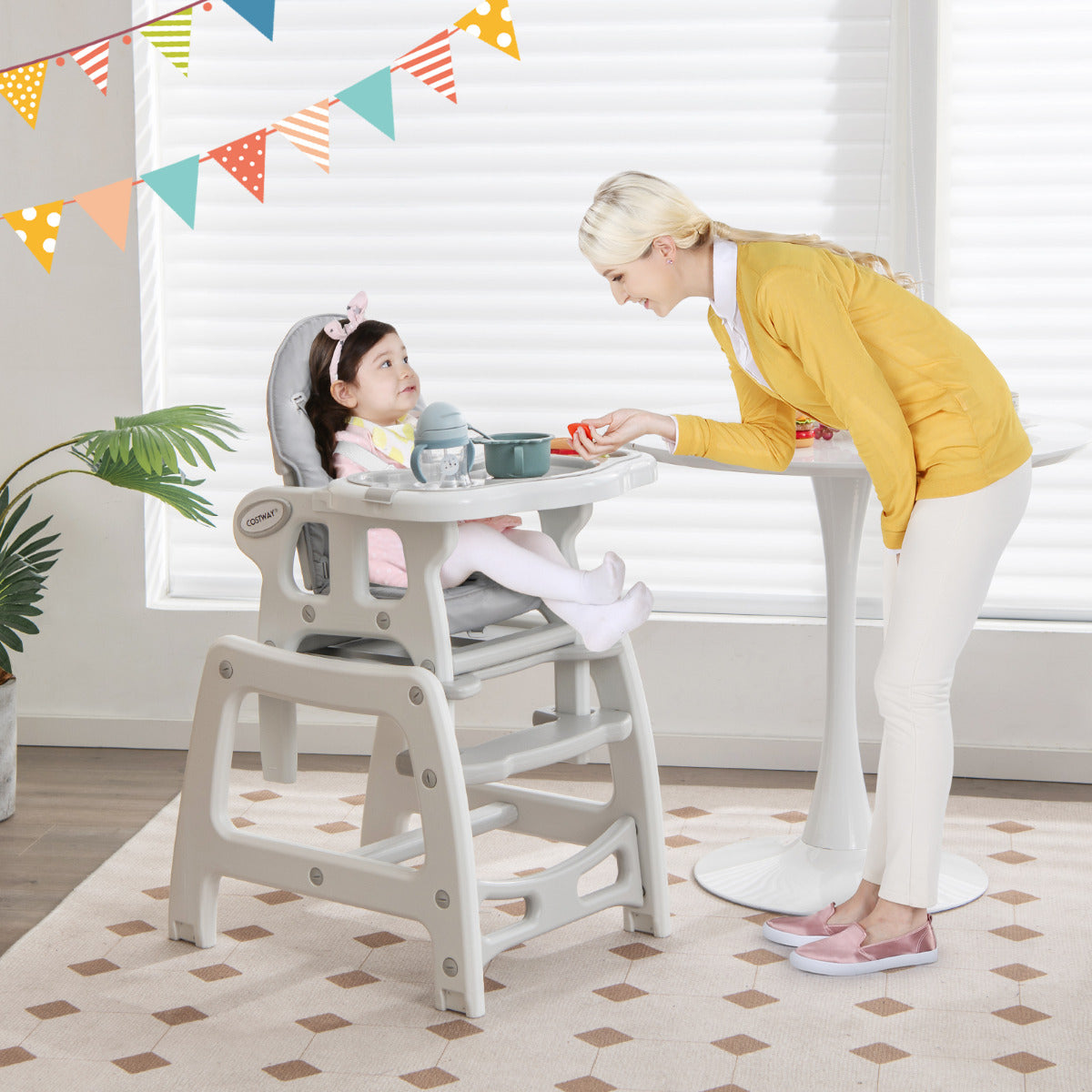 Trona 3 em 1 Conversível Mesa e Cadeira para Crianças 6-36 Meses com Tabuleiro Removível Almofada Encosto de 3 Níveis Arnês 62 x 51 x 104 cm Cinzento