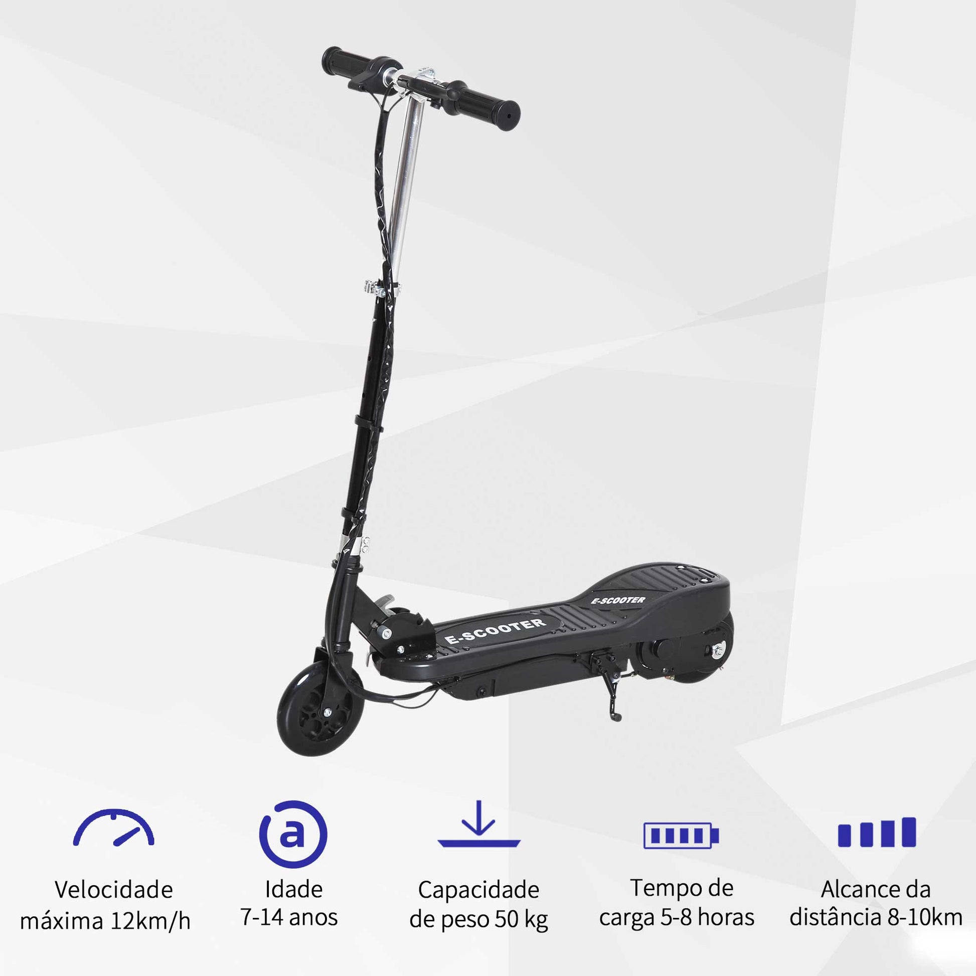 Descubra a trotinete elétrica perfeita para crianças entre os 7 e os 14 anos, com um design resistente e durável em aço e PP, na cor preta.