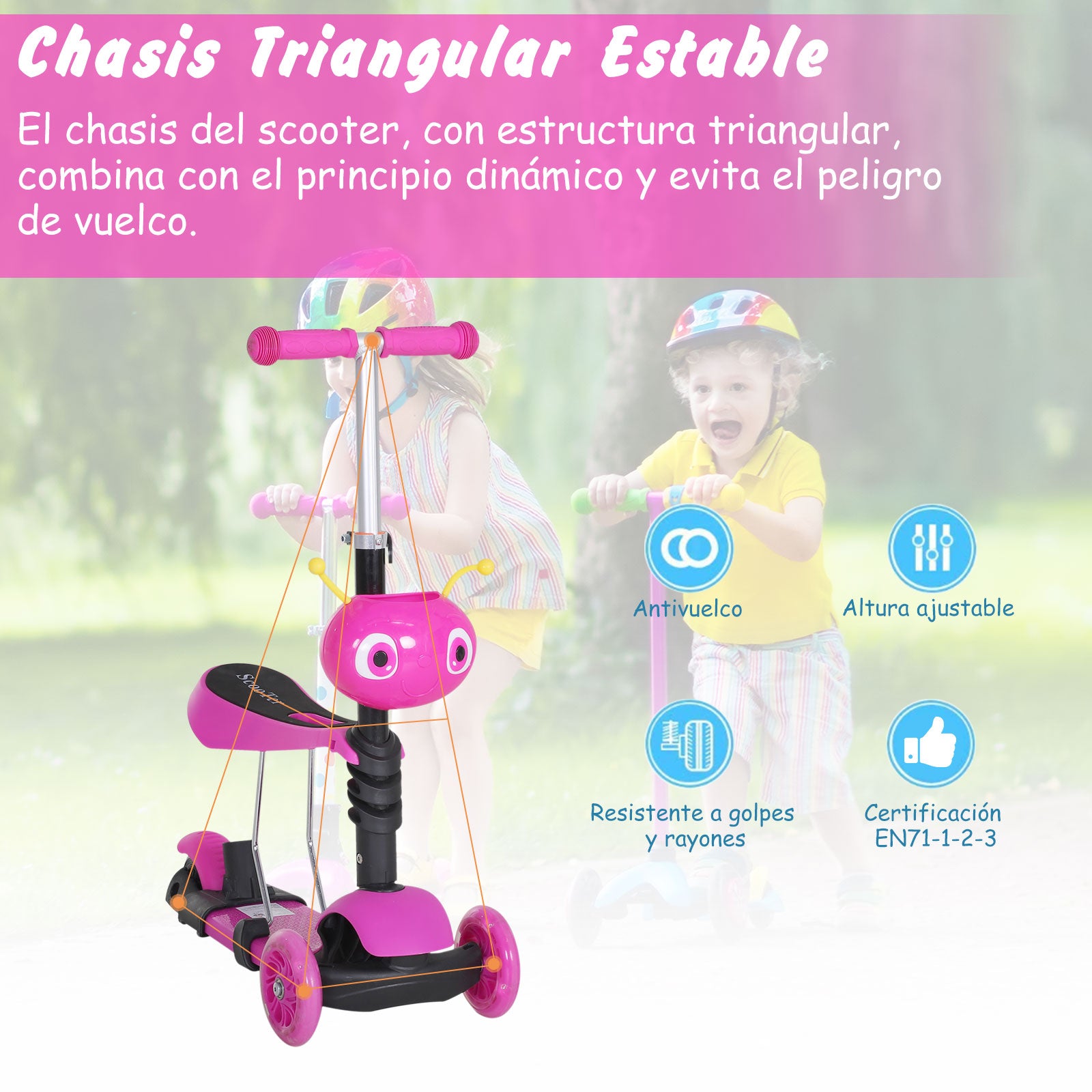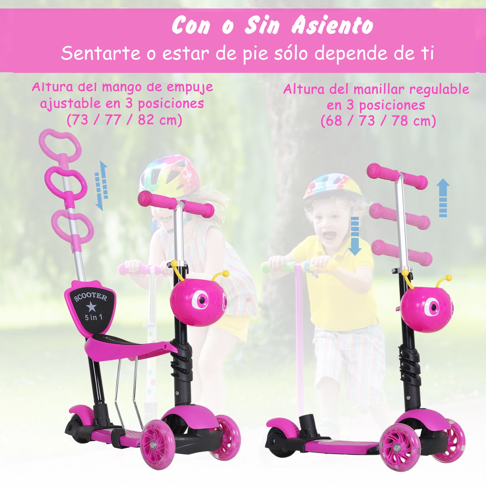 Trotinete para Crianças 3 Rodas com Assento Removível 62x25x72,5 cm - Cor Rosa
