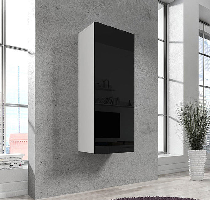 Armário suspenso – 40x126cm – branco e preto – melamina e MDF