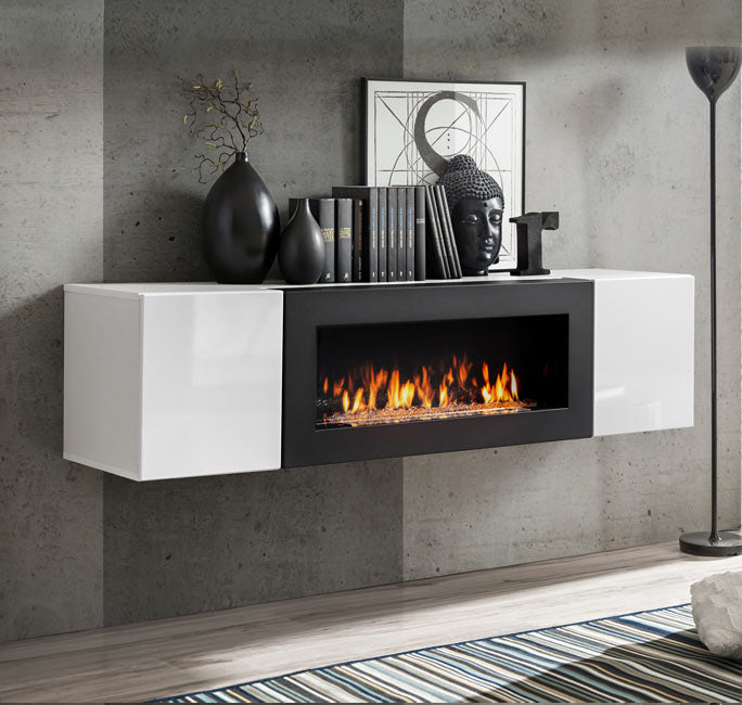 Armário Pendurado com Lareira – 160x40cm – Branco – Metal