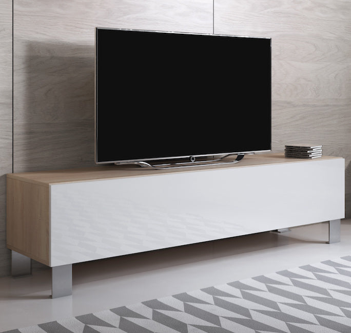 Móvel de TV – 160x42cm – Sonoma e Branco – Alumínio