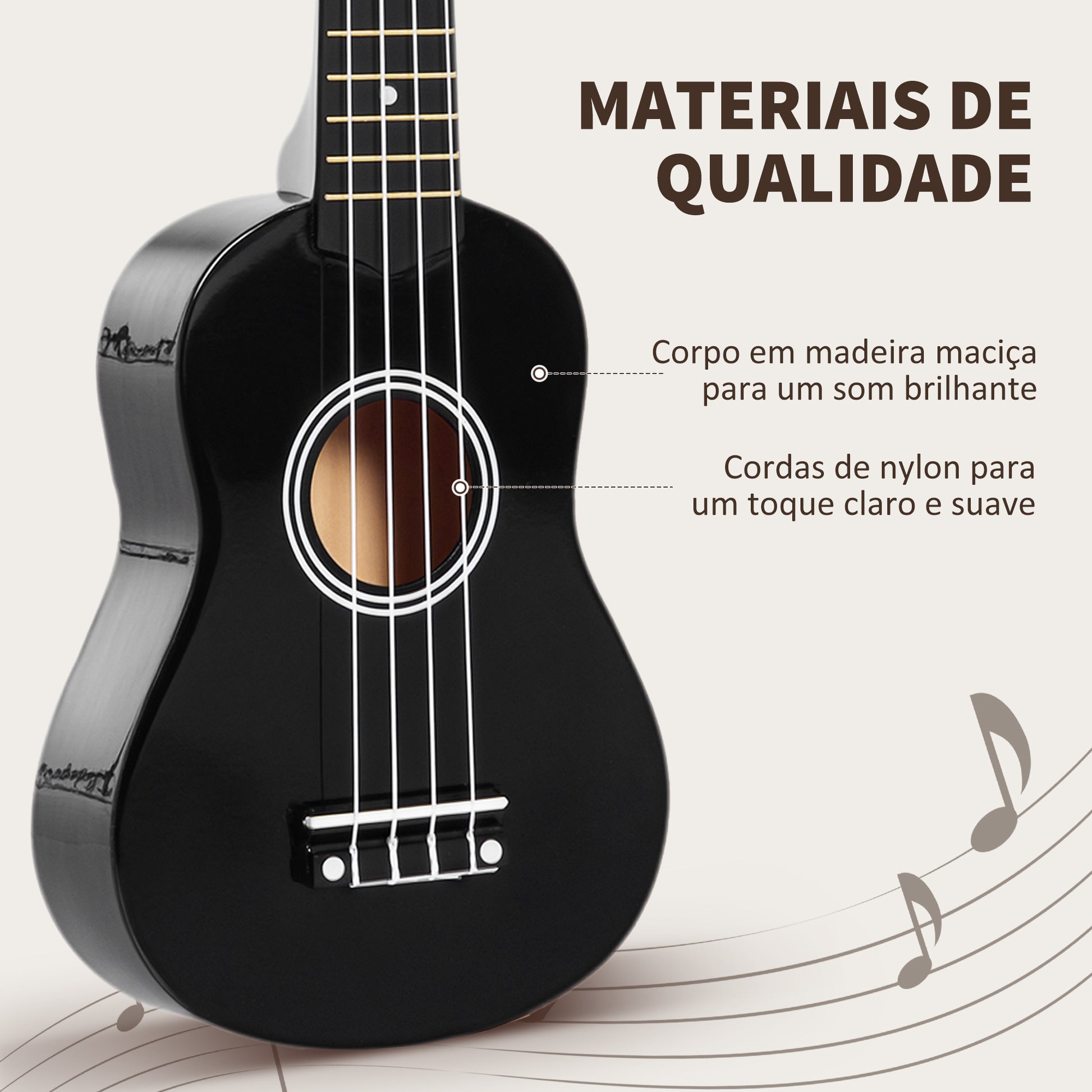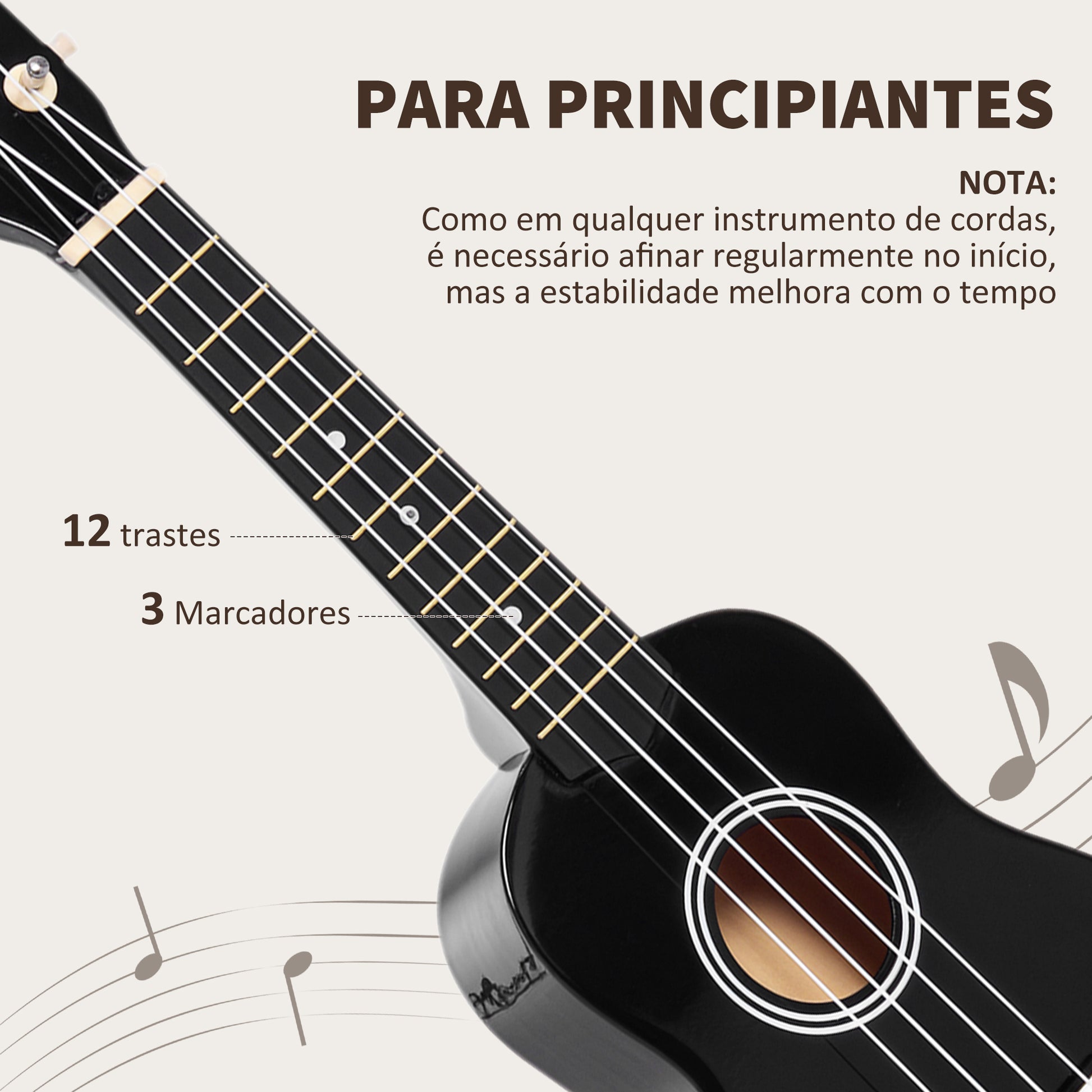 Ukelele Soprano 21 Polegadas em Madeira - Preto (53x17,5x6,2 cm)
