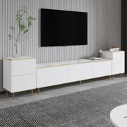 Fabricado com a máxima precisão e atenção aos detalhes, o nosso móvel para televisão foi concebido para dar um toque de sofisticação à sua casa. A combinação de mármore branco e cores douradas exala opulência, tornando-o numa peça de referência que impressionará os seus convidados.