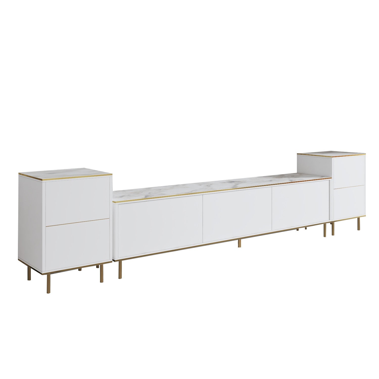 Móvel de TV – 180 cm x 45,2 cm x 35 cm – Mármore branco e dourado – Melamina
