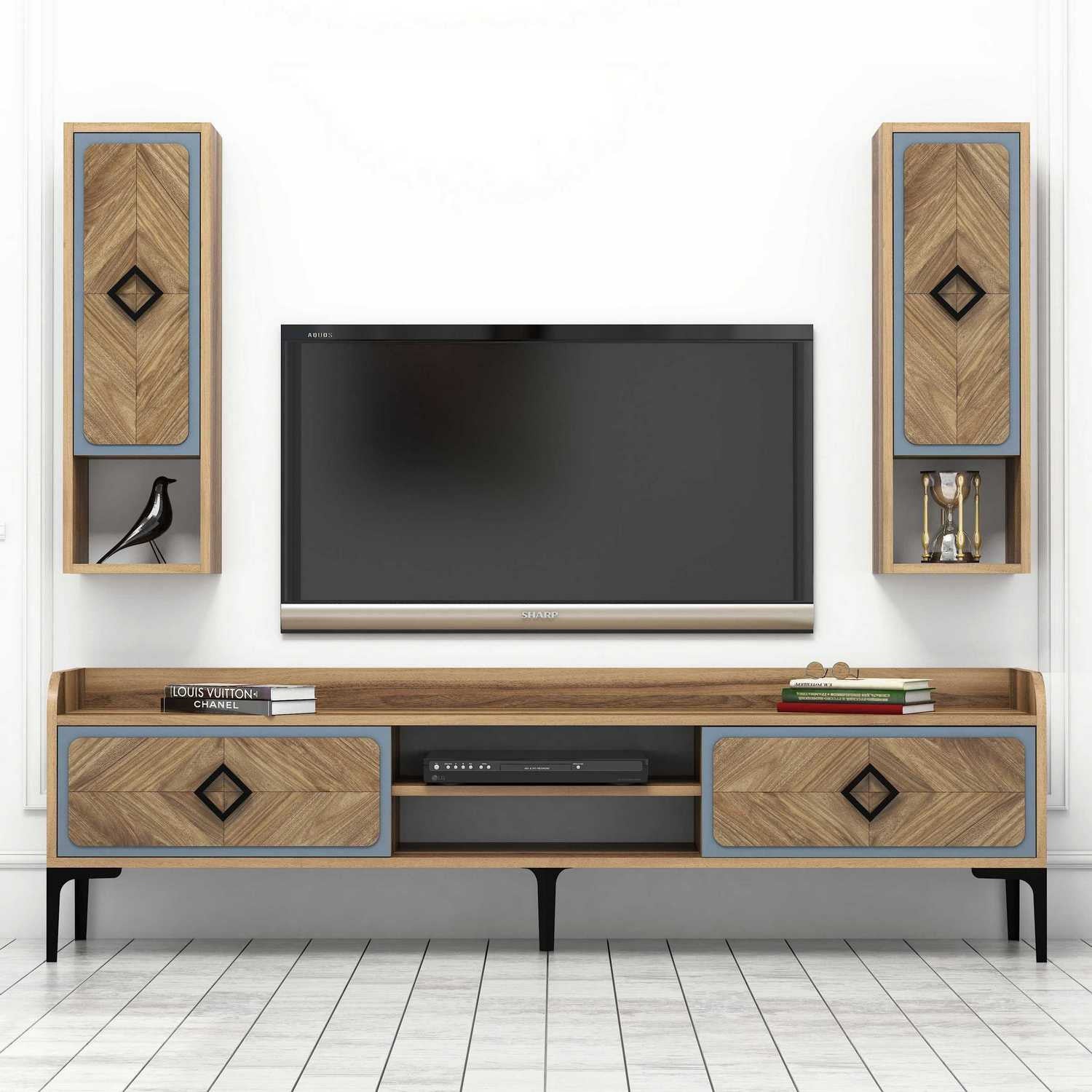 Móvel de TV moderno – 180 x 52 x 35 cm – Nogueira e Azul – Melamina