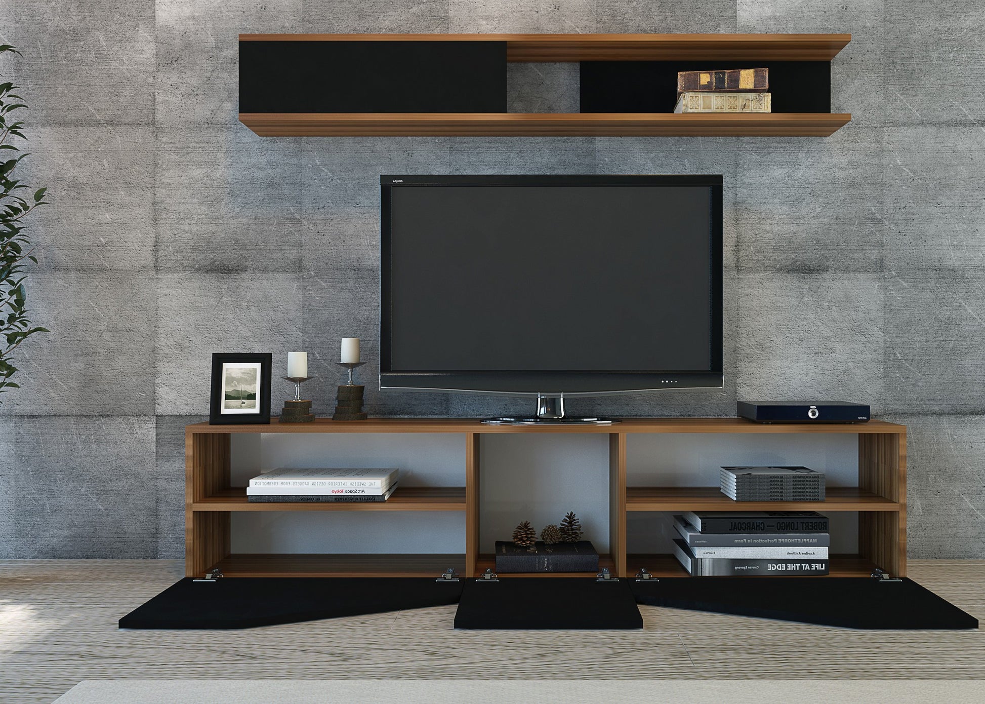 Móvel de TV moderno – 180 x 40 x 31 cm – nogueira e preto – painel de partículas revestido a melamina