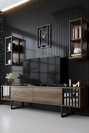 Com o seu design elegante e a sofisticada combinação de cores de nogueira e preto, o nosso móvel para televisão é o complemento perfeito para qualquer casa contemporânea. Combina-se facilmente com qualquer mobiliário existente e melhora a estética geral da sua sala de estar.