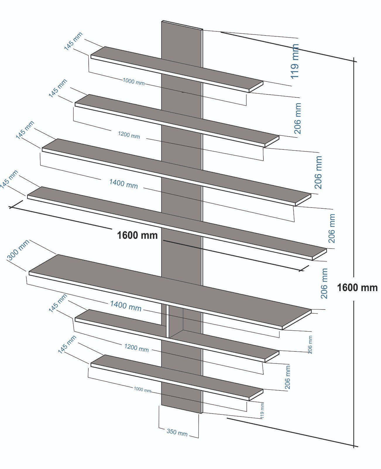 - Tamanho da prateleira intermédia:Largura:160cm,Profundidade:14,5cm