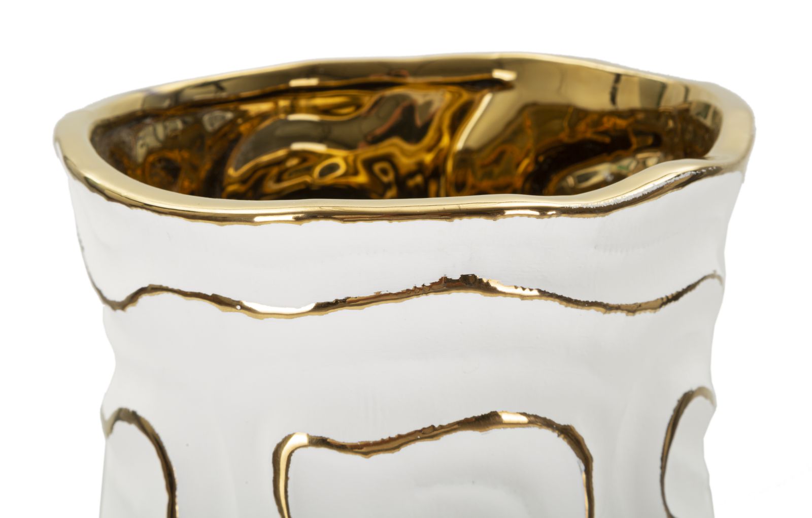 Vaso Cerâmico – Branco e Dourado
