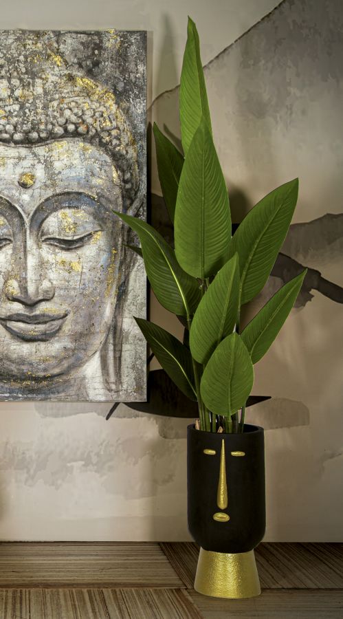 Descubra o vaso GLAM, uma peça única que combina arte e elegância com o seu design inspirado em tribos primitivas. Feito em poliresina de alta qualidade, este vaso preto e dourado destaca-se pelas suas características douradas estilizadas, conferindo um toque sofisticado e exótico a qualquer espaço. Ideal para quem procura adicionar um elemento de charme e personalidade à decoração da sua casa. Transforme o seu ambiente com esta peça de design arrojado e funcional.
