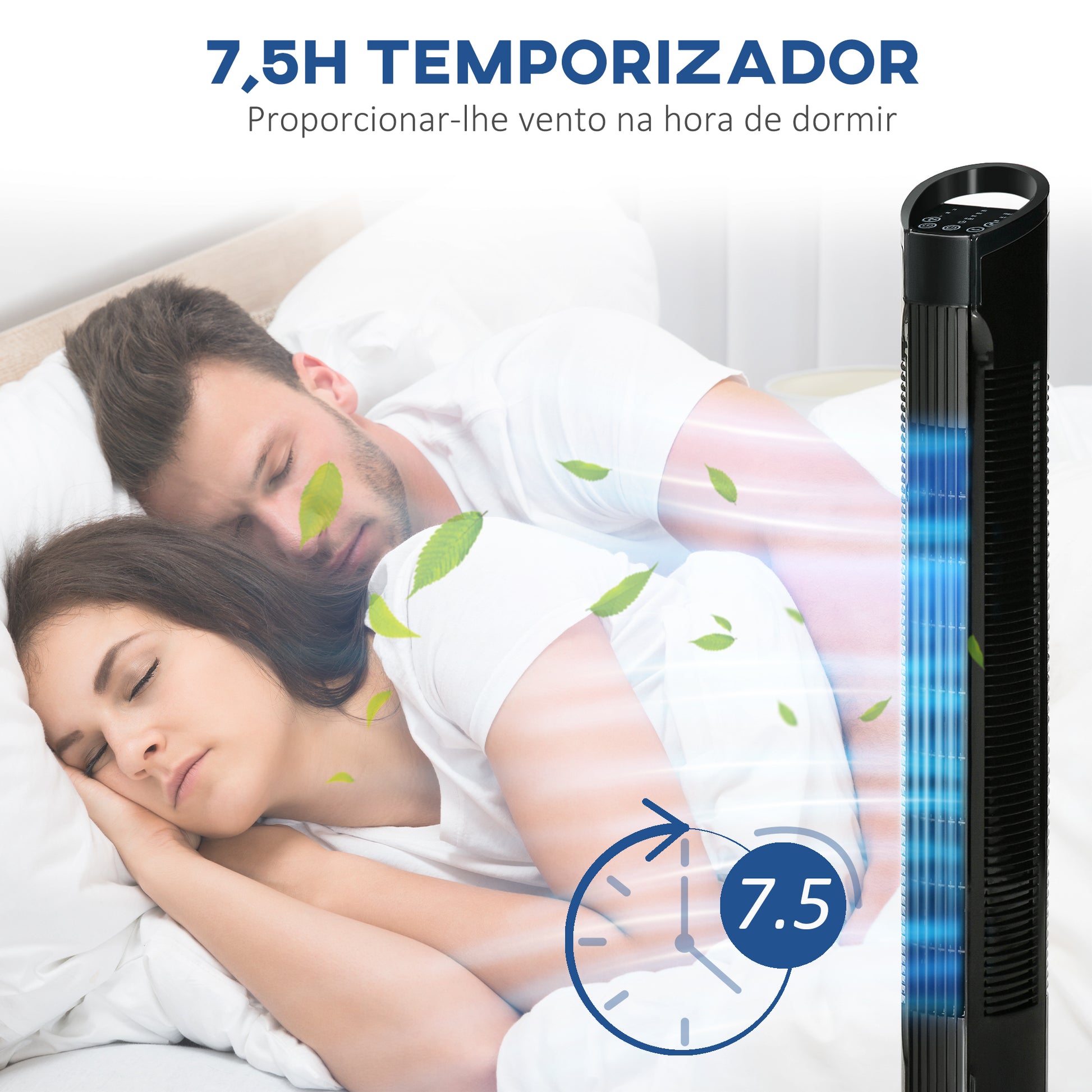 - Benefícios: Oferece oscilação de 70° para distribuição eficiente do ar, temporizador de 7,5 horas para programar o uso e economizar energia, e controlo remoto para conveniência.