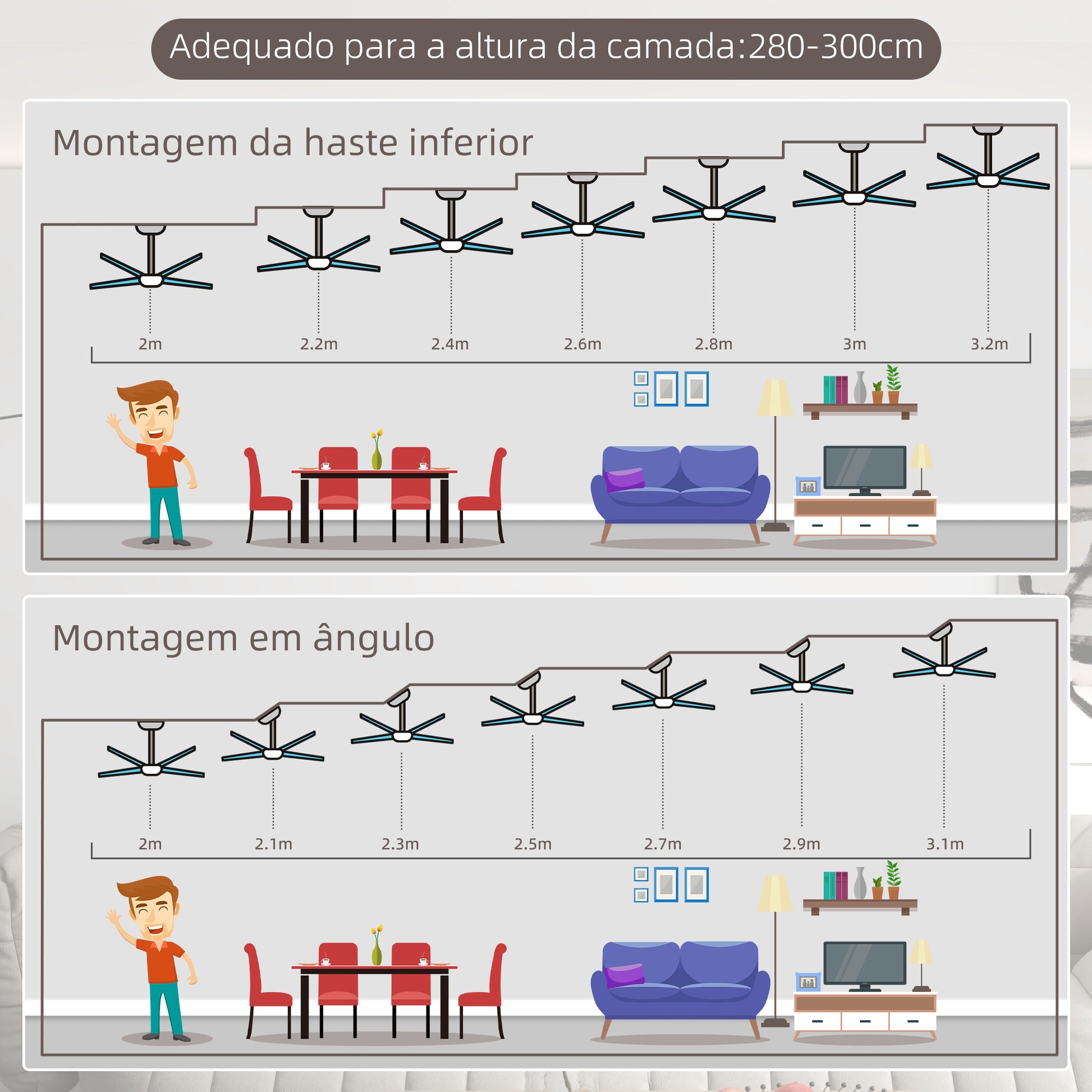 - Benefícios: Motor DC silencioso, luz LED branca com vida útil de 25.000 horas, 6 velocidades, modo brisa, temporizador e controlo remoto
