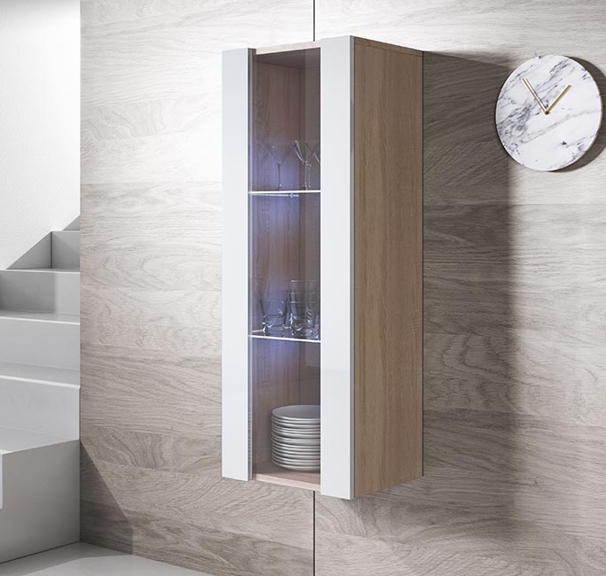 Armário pendurado com 1 porta universal abatível e 3 compartimentos