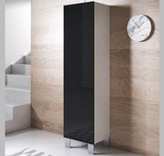 - Materiais: estrutura em melamina brilhante, frontal em melamina brilhante com canto reto, porta universal, abertura com sistema push-click, traseira em tabuleiro fácil de perfurar (para cabos)