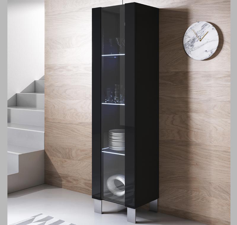 Vitrina – 40x177cm – Preto – Melamina e Vidro
