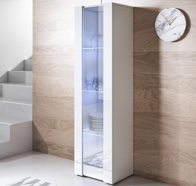 - Frente em melamina brilhante com borda reta (não alto brilho) combinada com metacrilato