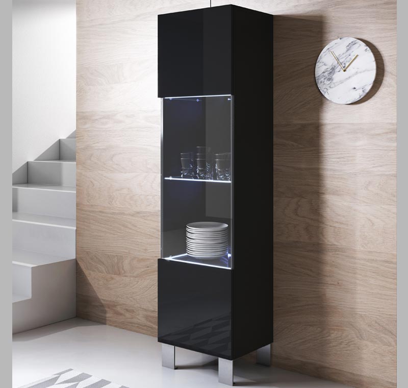 Vitrina – 40x177cm – Preto – Melamina e Alumínio