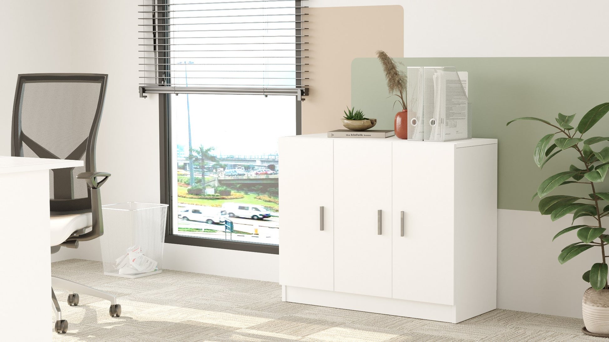 Com uma largura de 89. 1cm, altura de 73,8cm e profundidade de 38,1cm, este armário multifunções oferece um espaço de arrumação amplo para todos os seus pertences. Quer precise de guardar livros, roupas ou material de escritório, este armário tem tudo o que precisa. A cor branca acrescenta uma sensação de frescura e luminosidade a qualquer divisão, criando um espaço limpo e organizado que vai adorar quando chegar a casa.