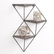 Prateleira decorativa de parede em madeira – 45 x 34 x 13 cm – nogueira e preto – madeira de abeto e metal